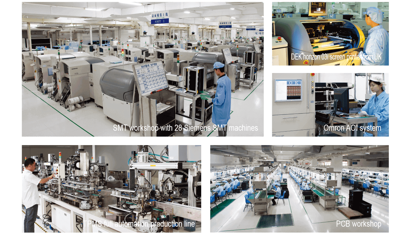 There are 10 automatic SMT lines(with 28 Siemens SMT machines) in the SMT center,10 lead-free double wave soldering lines and 10 ICT testing machines in the wave soldering workshop.